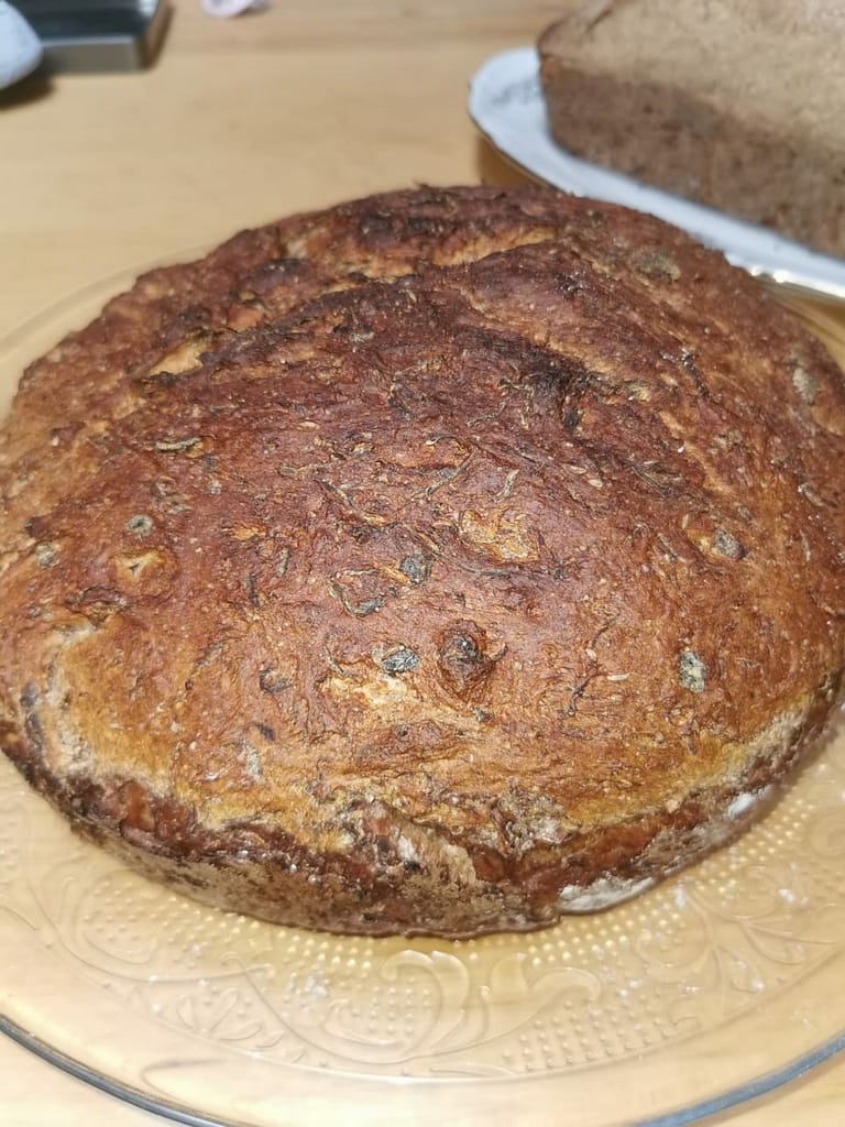 - In eine ofenfeste Form oder einen Topf 15min bei ca 210° erhitzen, dann Mehl hinein stäuben und den Teig hinein geben, 60min bei 210° backen.