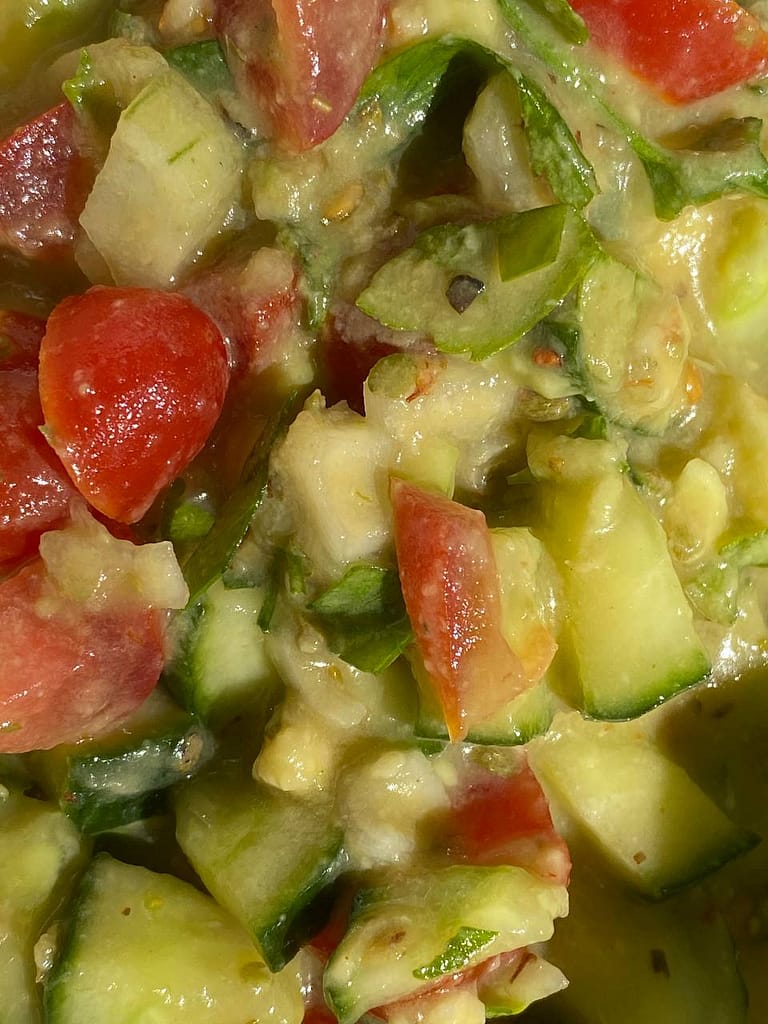 Herzhafter leckerer Tomaten-Gurken-Salat mit Avocado