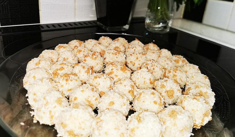 - Vollkorndinkelflakes zerkleinern und mit den Kokosflocken mischen.