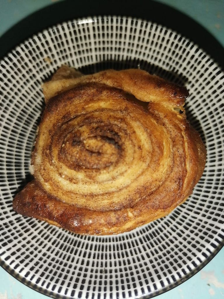 - Blätterteig mit der Zimt-Birkenzucker-Mischung flächendeckend bestreuen und einrollen.