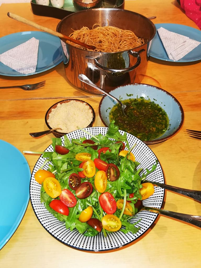 - Spaghetti kochen, am besten schmecken Dinkelvollkornspaghetti dazu.